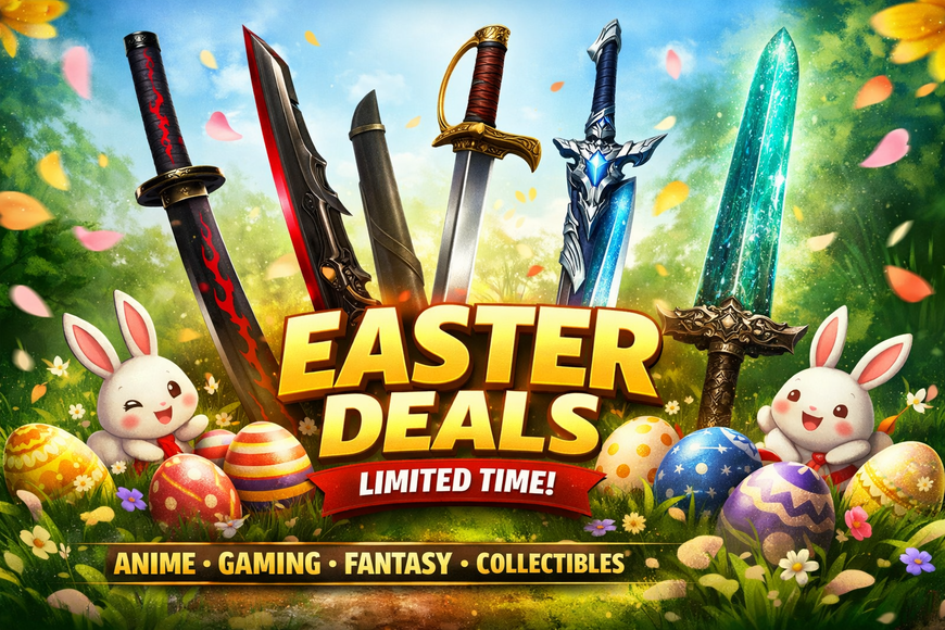 Passend zu Ostern gibt es bei uns echte Highlights für Sammler und Fans: Die Ostern Supersonderangebote sind gestartet! Eine Auswahl beliebter Schwerter aus Anime, Games und Fantasy ist jetzt reduziert und sofort lieferbar.